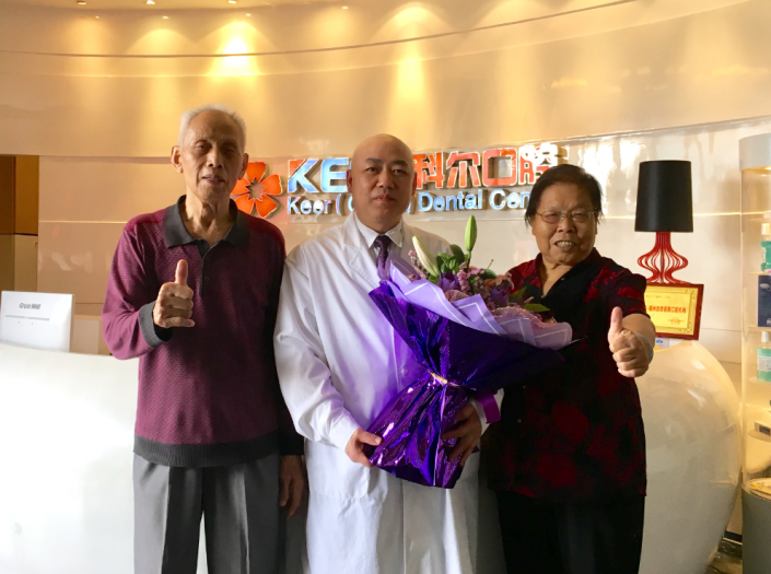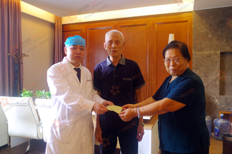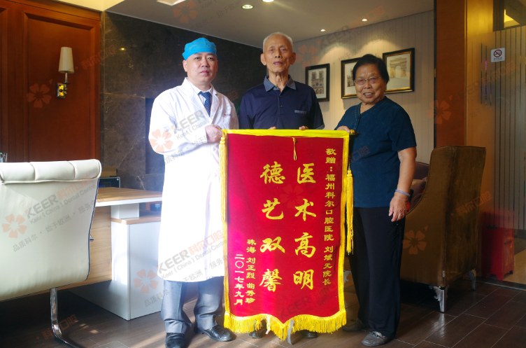 在国庆节即将来临之际,为了感谢刘斌元院长,两夫妻特地再次来到科尔口腔,就是为了送一封感谢信给刘斌元院长,递上一面锦旗来表达自己的感恩之情。感谢刘斌元院长妙手回春的种植牙技术,感谢刘斌元院长孜孜不倦的术后关怀,感谢科尔口腔为全民口福做出的贡献。