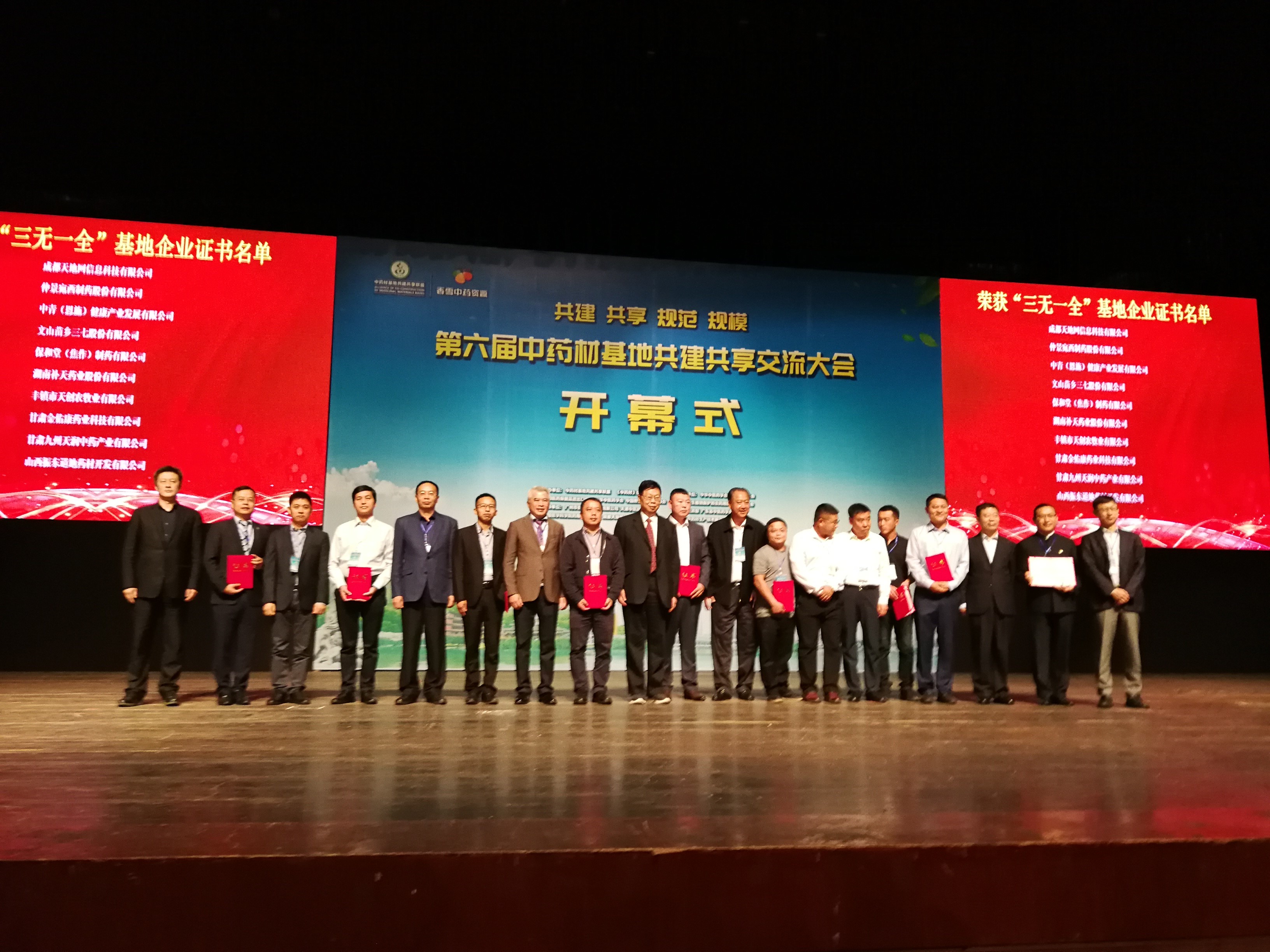 11月3日-5日,“2018中国国际中医药大健康博览会和第六届中药材基地共建共享交流大会”在广州白云国际会议中心召开。原国家食品药品监督管理局副局长任德权、中药材基地共建共享联盟主席任德权、中国工程院院士、中国中医科学院院长、天津中医药大学校长张伯礼教授、国家工信部吴海东副司长、中药材基地共建共享联盟秘书长孙晓波、广州市香雪制药股份有限公司董事长王永辉及各基地联盟企业代表等领导共同出席本次展会开幕式。全国20家企业荣获“三无一全”品牌基地企业荣誉称号。