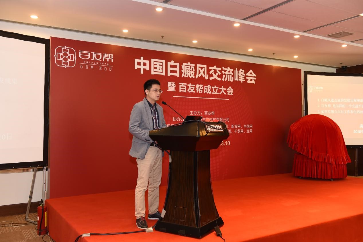 戊戌狗年伊始,北京国家会议中心3号厅内气氛热烈,来自全国的各地的知名白癜风专家及近百名患者汇聚一堂隆重举办了首届中国白癜风患者交流峰会。本次交流峰由近十万位白癜风病友交流平台白友帮主办,北京妆惠生物科技有限公司承办,包括搜狐网,腾讯网等全国数十家媒体,对本次交流峰会进行了全程跟踪报道。
