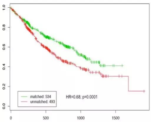 1180位实体癌症患者中,接受凯瑞思多平台分子检测指导治疗患者与对照组患者对比,死亡风险降低了32%,中位总生存期延长422天!