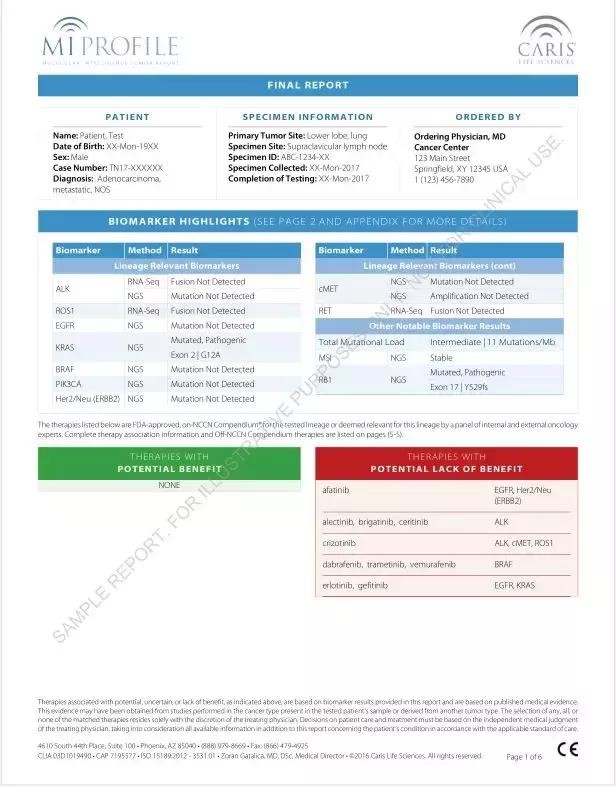 根据临床文献,生物标志物和治疗方法最好通过寻找明确的基因组和蛋白质组异常的特定技术进行分析。 因此,凯瑞思检查DNA,RNA和蛋白质来解码患者的组织并提供更全面的肿瘤评估。 一种技术可能不足以提供肿瘤生物学的综合图像或全部的临床适用性。