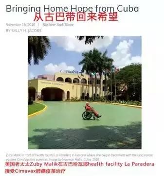 据《纽约时报》报道,古巴医生治好了一位晚期肺癌的美国老奶奶。在美国时,这位奶奶的医生告诉她,就算接受化疗和放疗,最多也只剩下5个月的寿命。