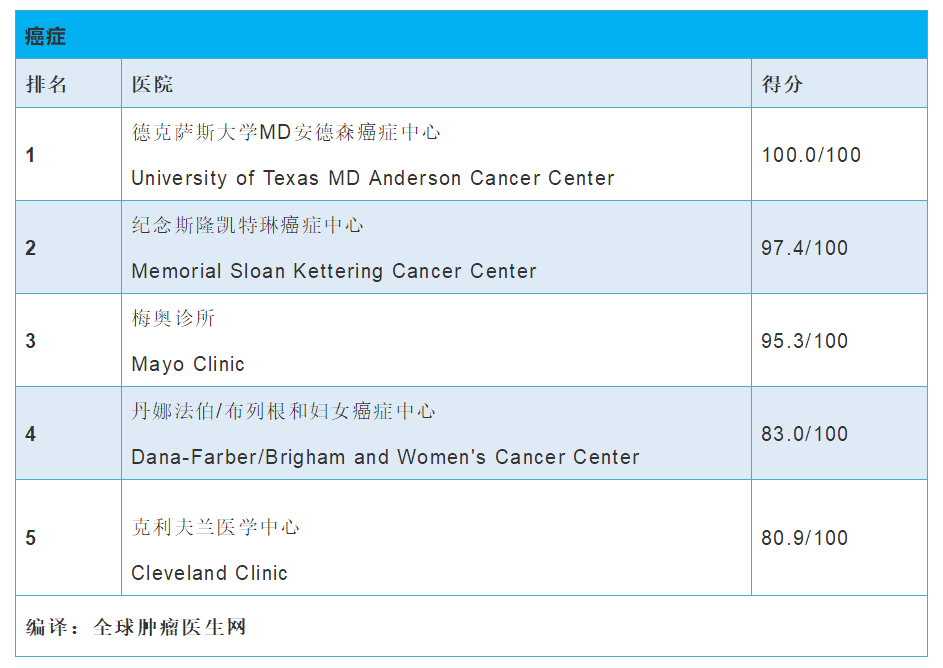 近日,《美国新闻与世界报道》(U.S News &World Report)最新公布了2018-2019美国最佳医院综合排行榜,16项专科排名也同时出炉。在癌症排名方面,自1990年该项评比开始至今,MD安德森癌症中心始终位列全美最佳肿瘤专科医院冠亚军的位置,在过去的17年中,MD安德森癌症中心14次名列第一,雄厚的实力不容小觑。纪念斯隆凯特琳癌症中心和梅奥诊所分别位列第二和第三,排名第四的是哈佛大学医学院教学附属丹娜法伯/布列根和妇女癌症中心。