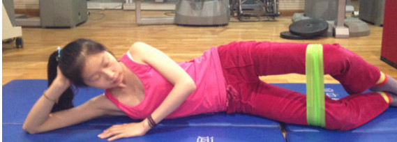 中级:可以在中级的基础上加一个弹力带,网购很方便。颜色不同弹力不同,如果大家要买建议买蓝色的即可。双腿绑在一起,膝用力向外侧伸展,同样是一天3次,一次15个