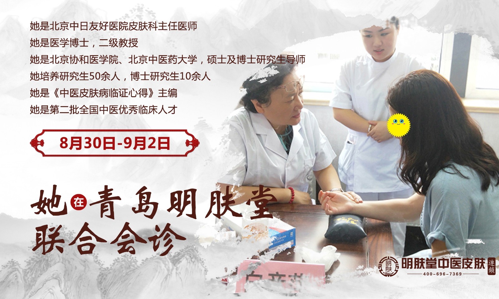 2019年7月,白彦萍教授应邀明肤堂前来助阵全国大型皮肤病义诊活动6周年。义诊期间,白教授发现,岛城百姓受皮肤病困扰的患者很多,以及有患者反馈没有预约到会诊名额,表示遗憾!白教授医者仁心,于心不忍,鉴于此应明肤堂院办再次邀请,白教授会在8月30号-2号再来明肤堂会诊。