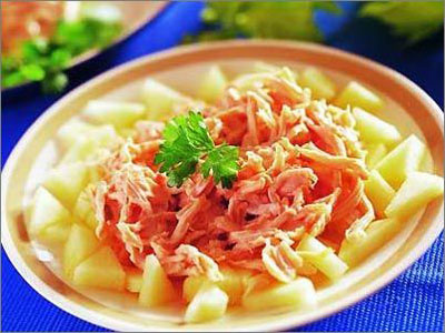 做法:将瘦鸡肉切丝用开水烫熟,捞起冲凉水后加入豆芽、青红椒拌匀,加香油、醋、少许盐调味!