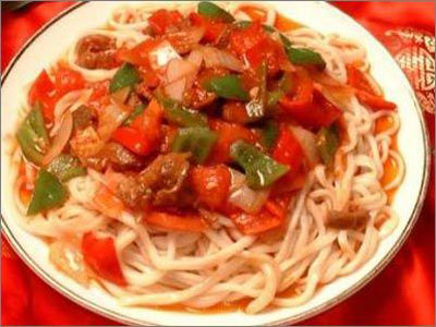 做法:面条煮熟捞起,用少许盐、胡椒拌匀,最后浇上西红柿酱!
