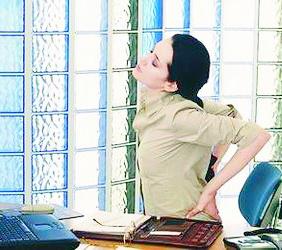 白领MM的工作花大多的时间坐在椅子上,所以坐姿非常重要,坐的时候背部一定要有椅背的支撑,最好椅背能够稍有突出的弧度来支撑背部。另外可以将膝盖的高度稍高于臀部的位置,如此也可以减少脊椎所受的压力。一个姿势的维持不要超过一个小时就应稍微活动一下身躯,也有助背部的健康。