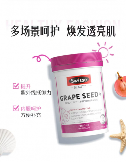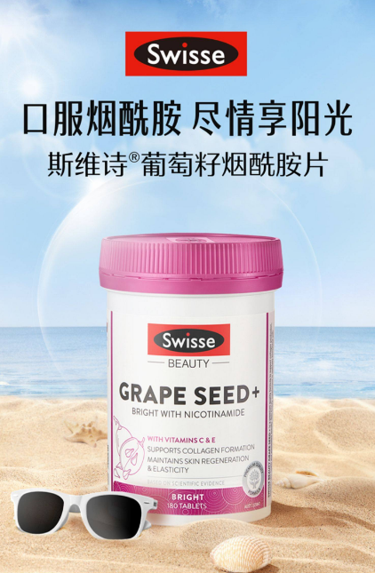 现代护肤正掀起一场天然成分革命,在光防护领域,葡萄籽提取物中的原花青素凭借卓越表现脱颖而出。这种植物多酚类物质具有超强抗氧化特性,不仅能高效清除环境污染物诱导产生的自由基,更能通过调控酪氨酸酶活性阻断黑色素合成通路,实现从源头改善肤色不均问题。与之协同增效的是经典成分维生素C,这位"护肤元老"不仅具备跨膜抗氧化能力,还能刺激胶原蛋白合成,显著增强皮肤对外界刺激的抵御力。而突破性研究发现,口服烟酰胺可有助于提升皮肤的光抵抗能力,形成深层防护机制。Swisse葡萄籽创新性地构建了原花青素-维生素C-烟酰胺的三维防御矩阵,通过科学配比实现成分间的加乘效应,为现代人提供了一站式内服美容解决方案。