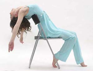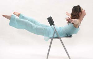 动作要领:腹部贴在椅面上,头尽量向上抬,双臂尽量向后伸,双腿尽量向上抬。