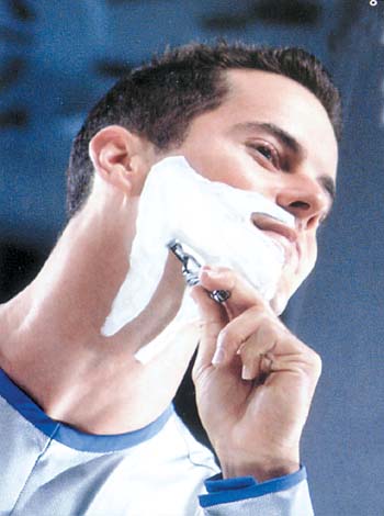 润湿水分是剃须的关键,它会让胡须比原来柔软70%。你可以用两种方法湿润:洒浴或用湿热毛巾敷三分钟。洒浴让水分吸收充分,但好事过头就变成了坏事,洗澡时的汗液会冲淡泡沫从而降低保护性,所以理想的剃须时间是洗澡后几分钟,毛孔还舒张着而脸却不再滴水。