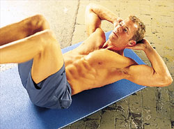 腹部,是健美锻炼的重点。腹部处在身体的最中央,是特别容易引人注目的部位。从人体健美角度看,真正健美的腹部应由细而有力的腰和线条明显的腹肌构成。因此,请您不要忽视腹部的健美锻炼。