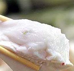 茉莉花茶鱿鱼卷:选优质鱿鱼400克,茉莉花茶7克,料酒15克,精盐4.5克,淀粉、蒜泥、葱、姜适量。将鱿鱼用水发好后切成麦穗形花刀,放入开水锅中汆烫卷拢,捞出沥干。将茉莉花茶用开水泡开,滗去茶水,再用开水泡第二次,待泡出茶香味时去掉茶叶,取第二泡的茶汁加料酒、精盐、淀粉调成芡汁。用旺火将素油烧至七八成热,下鱿鱼卷急爆后捞出沥油。原锅中留余油少许,放入适量蒜泥、葱和姜片煸出香味,取出葱、姜片,放入鱿鱼卷,随即倒入芡汁,颠炒几下,撒上几朵茉莉花,出锅装盘即成。此茶肴造型美观,滑、嫩、鲜,且有幽雅的茉莉茶香。