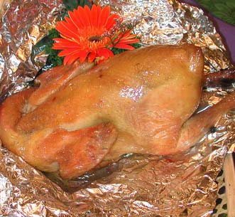 2、把料酒倒入锅内然后把老抽倒在鸭子身上并涂抹均匀然后放入生姜、京葱、以及各种调料最好倒入清水大约没过鸭子的2/3喜欢味重再加些许盐盖上盖子文火焖半个小时
