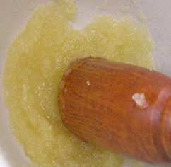 第二步--捣碎 不要切碎:因此,如果想达到最好的保健效果,食用大蒜最好捣碎成泥,而不是用刀切成蒜末。并且要先放10—15分钟,让蒜氨酸和蒜酶在空气中结合产生大蒜素后再食用。所以家庭里用蒜生拌凉菜,吃饺子时候用醋和少量芝麻油调的蒜泥都是很健康的吃法。